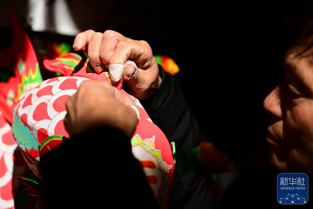 1月29日,瞻淇村的市級(jí)非遺項(xiàng)目魚燈代表性傳承人汪近午在制作魚燈。
