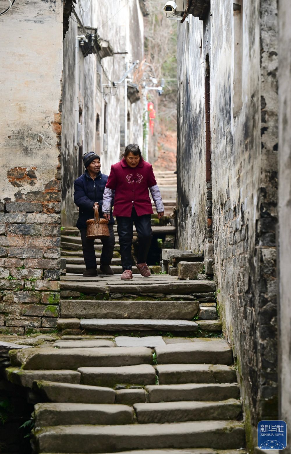2月8日,村民在瞻淇村曬太陽(yáng)。