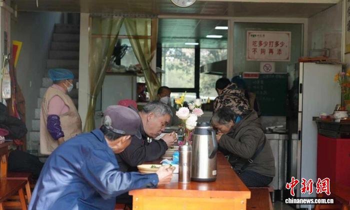 浙江海鹽,民眾在免費素食館中用餐。海鹽縣傳媒中心供圖