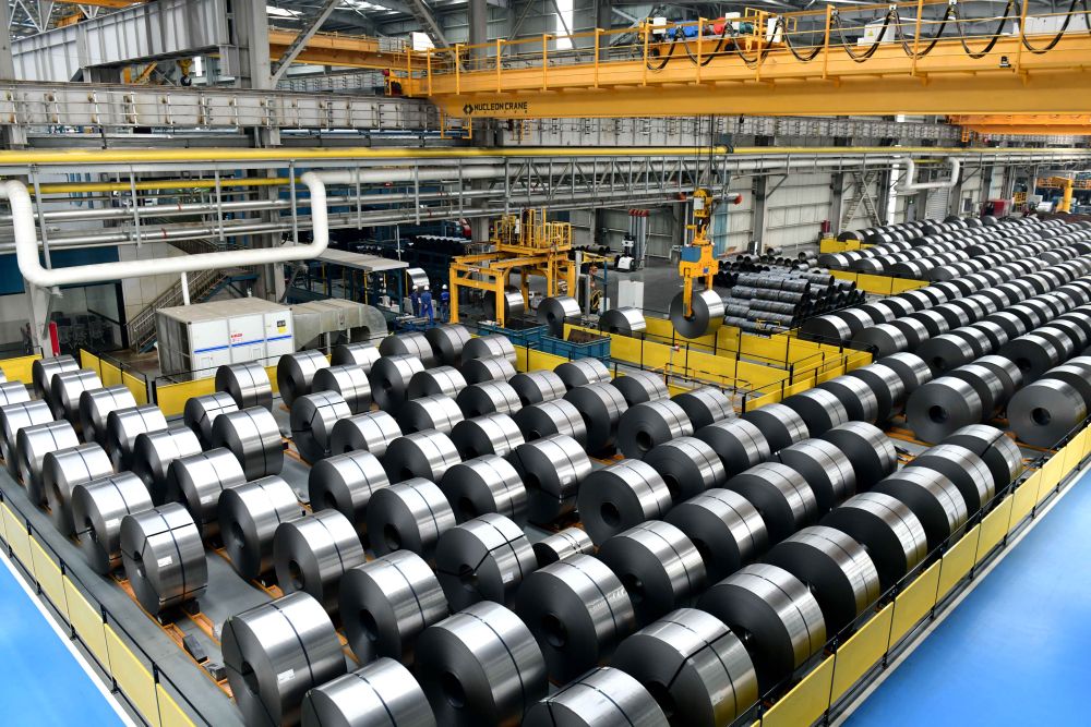 在山東日照昱嵐智造產(chǎn)業(yè)園拍攝的鋼卷生產(chǎn)車間(2025年5月21日攝)。