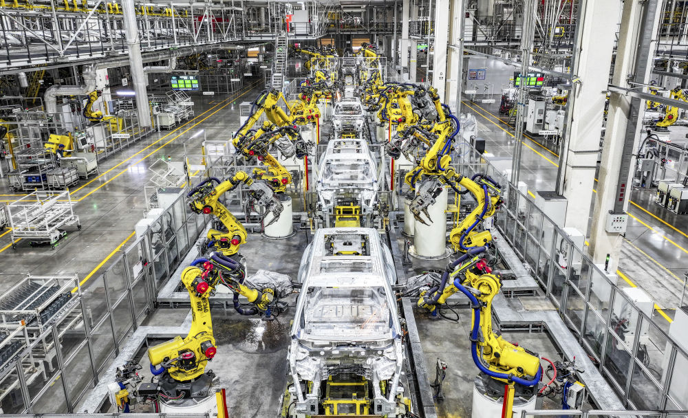 在位于重慶市兩江新區(qū)的賽力斯汽車超級(jí)工廠拍攝的自動(dòng)化生產(chǎn)作業(yè)現(xiàn)場(2025年9月19日攝)。