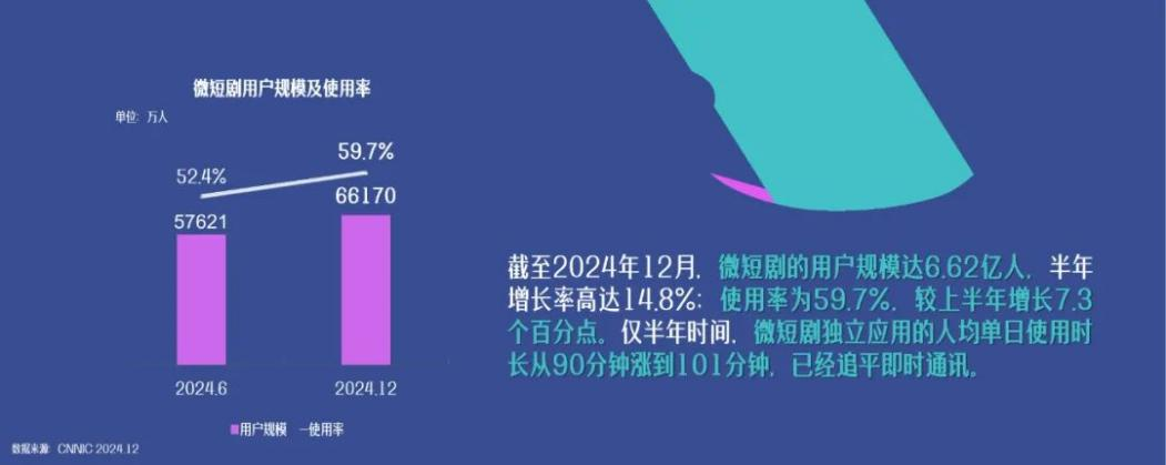 據(jù)《中國網(wǎng)絡(luò)視聽發(fā)展研究報告(2025)》顯示,截至2024年12月,微短劇用戶規(guī)模達(dá)6.62億人,使用率為59.7%,市場規(guī)模突破500億元,2025年預(yù)計已破千億元。微短劇的爆發(fā)式增長背后,關(guān)于內(nèi)容審核、未成年人保護(hù)、精品化發(fā)展的討論,正在兩會會場內(nèi)引發(fā)深度思考。