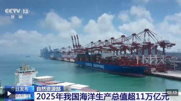 自然資源部今天(3月13日)發(fā)布消息,2025年,我國(guó)海洋經(jīng)濟(jì)穩(wěn)中有進(jìn),海洋生產(chǎn)總值達(dá)110180億元,占國(guó)內(nèi)生產(chǎn)總值比重7.9%。