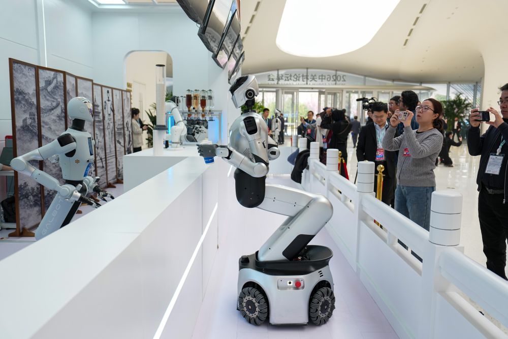 3月25日,在中關(guān)村國際創(chuàng)新中心,嘉賓在參觀機器人餐吧。 新華社記者 鞠煥宗 攝