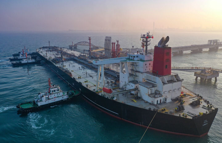 2025年12月18日,一艘裝載著17.9萬噸石化原輔料的船舶泊入國投洋浦油儲碼頭30萬噸級原油泊位(無人機(jī)照片)。這是海南自由貿(mào)易港正式啟動全島封關(guān)后洋浦港口岸第一批通關(guān)的“零關(guān)稅”石化原輔料。