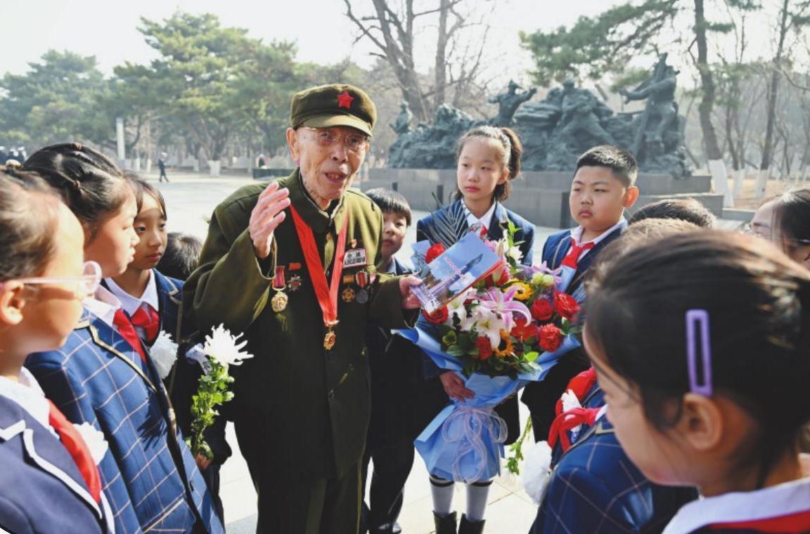 清明節(jié)臨近,全省各地開展“清明祭英烈”活動(dòng)。日前,沈陽(yáng)市各界人士走進(jìn)沈陽(yáng)抗美援朝烈士陵園,祭掃獻(xiàn)花,緬懷英雄?,F(xiàn)場(chǎng),92歲志愿軍老戰(zhàn)士金東輝為孩子們講述抗美援朝的英雄事跡。(遼寧日?qǐng)?bào)記者 趙敬東 攝)