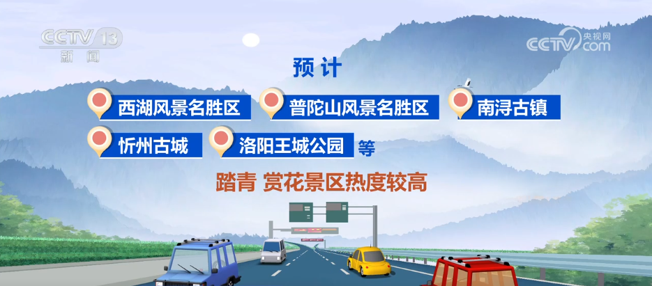 此外,清明假期,公眾祭掃、踏青出游等活動疊加,公園、郊區(qū)旅游景點、陵園墓地等區(qū)域客流增加,周邊公路交通壓力增大。預計西湖風景名勝區(qū)、普陀山風景名勝區(qū)、南潯古鎮(zhèn)、忻州古城、洛陽王城公園等踏青、賞花景區(qū)熱度較高;上海松鶴園、佛山順德飛鵝永久墓園、南寧四廈嶺公墓、武漢玉筍山陵園等陵園周邊可能會出現(xiàn)短時擁堵情況。