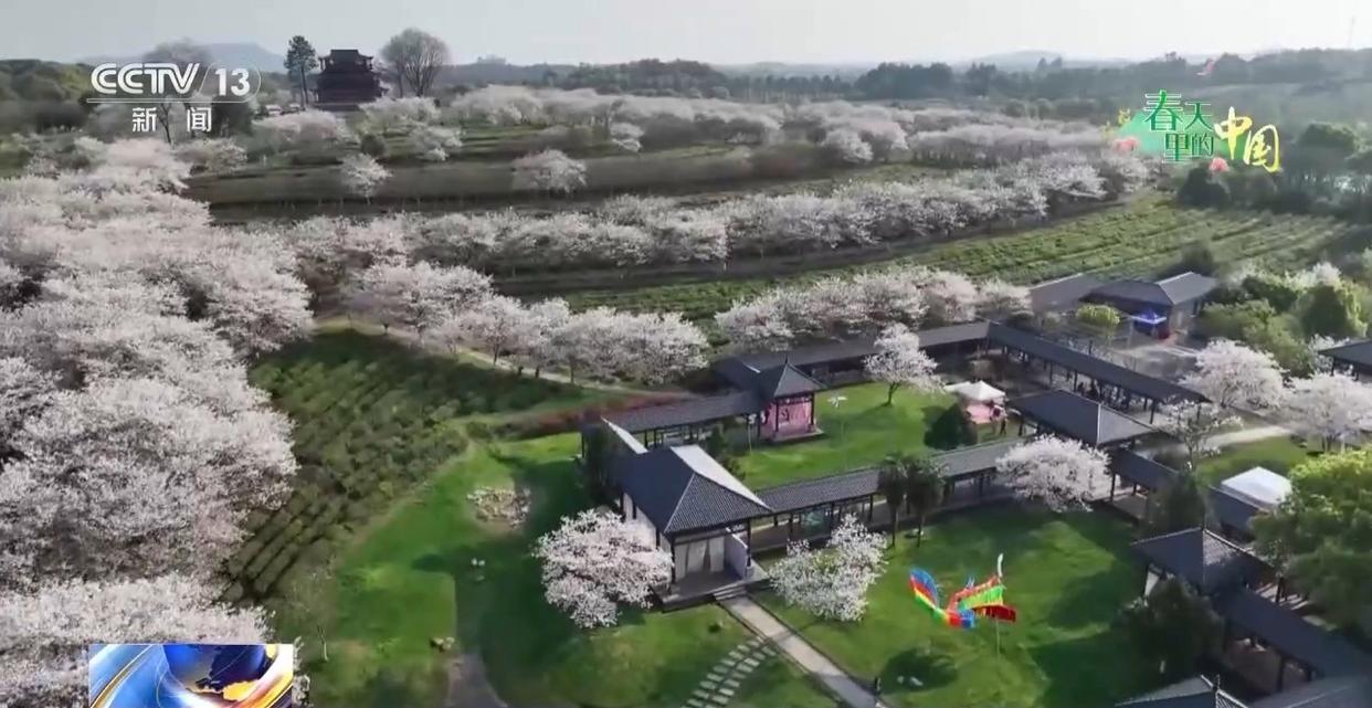 沿著繡球花海繼續(xù)前行,景區(qū)千畝櫻花迎來了進入觀賞期。這里的櫻花套種在漫山遍野的茶園中,層次分明,形成“遠看是茶海,近看是花?!钡莫毺鼐坝^?;ㄖp垂在茶壟,花香混合著茶香在空中彌漫,沁人心脾。