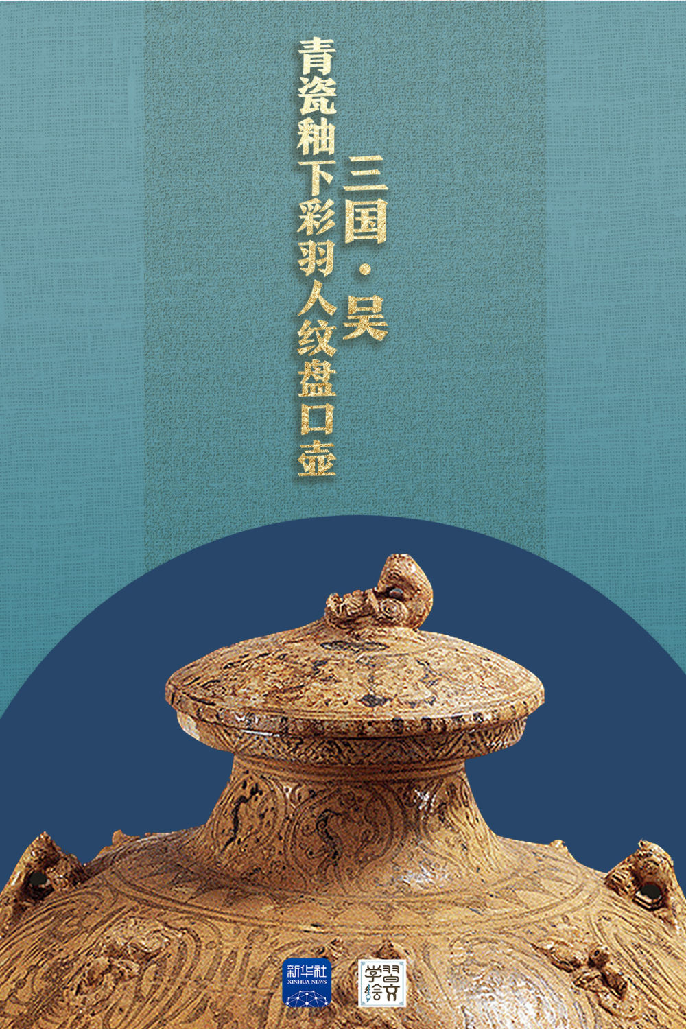 “這件藏于六朝博物館的青瓷釉下彩羽人紋盤口壺于1983年出土,精湛的釉下彩繪工藝,改變了人們對(duì)釉下彩工藝始于唐代的認(rèn)識(shí),把我國(guó)釉下彩繪工藝出現(xiàn)的時(shí)間提前了近五百年?!彼窝嗾f(shuō)。