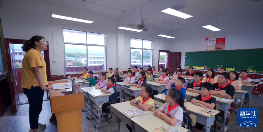 湖南第一師范畢業(yè)生秦葉仁在給湖南省寧鄉(xiāng)市龍?zhí)镦?zhèn)的孩子們上課。(資料照片)