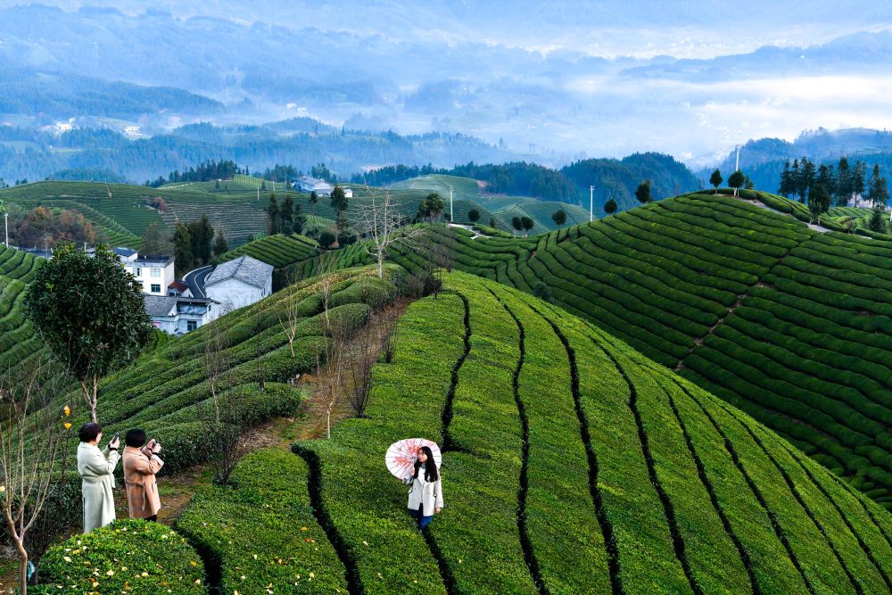 2023年12月6日,游客在湖北省鶴峰縣走馬鎮(zhèn)木耳山茶園觀光。近年來,鶴峰縣在發(fā)展壯大茶產(chǎn)業(yè)的同時,積極探索茶旅融合發(fā)展之路,打造多片集采摘、觀光于一體的萬畝茶園,讓茶農(nóng)實現(xiàn)“茶旅雙豐收”,助力鄉(xiāng)村振興。