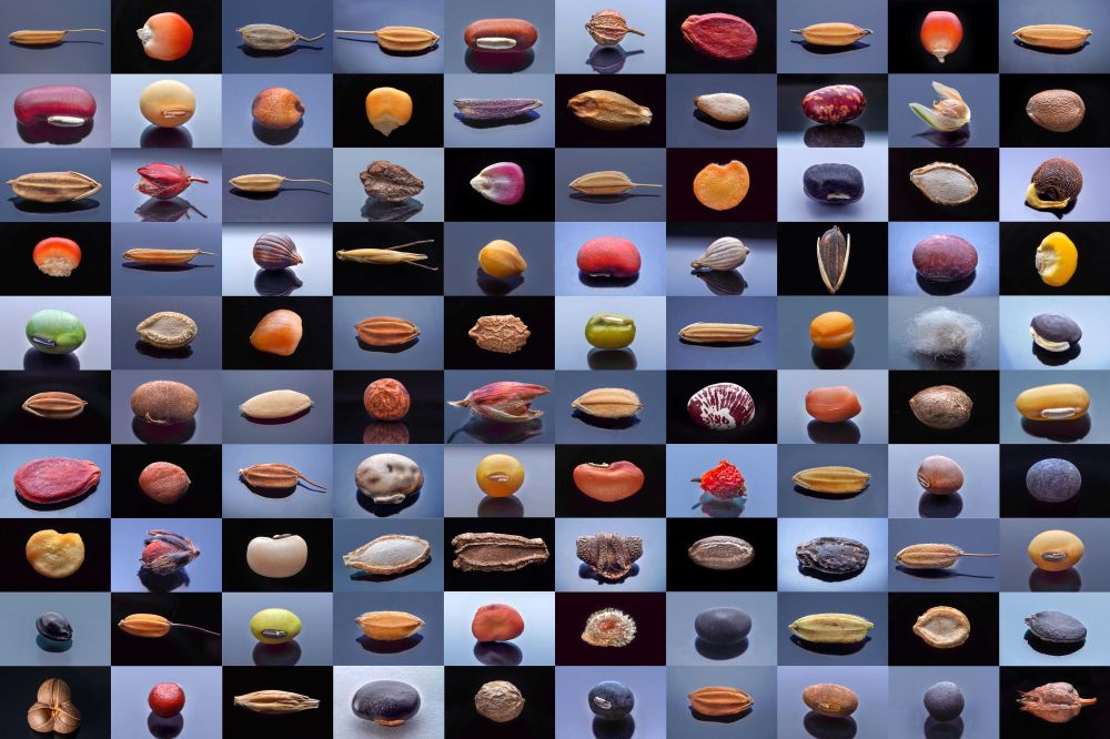 微距鏡頭下,湖南省農(nóng)作物種質(zhì)資源庫的種子千姿百態(tài)(100個種子拼版照片)。