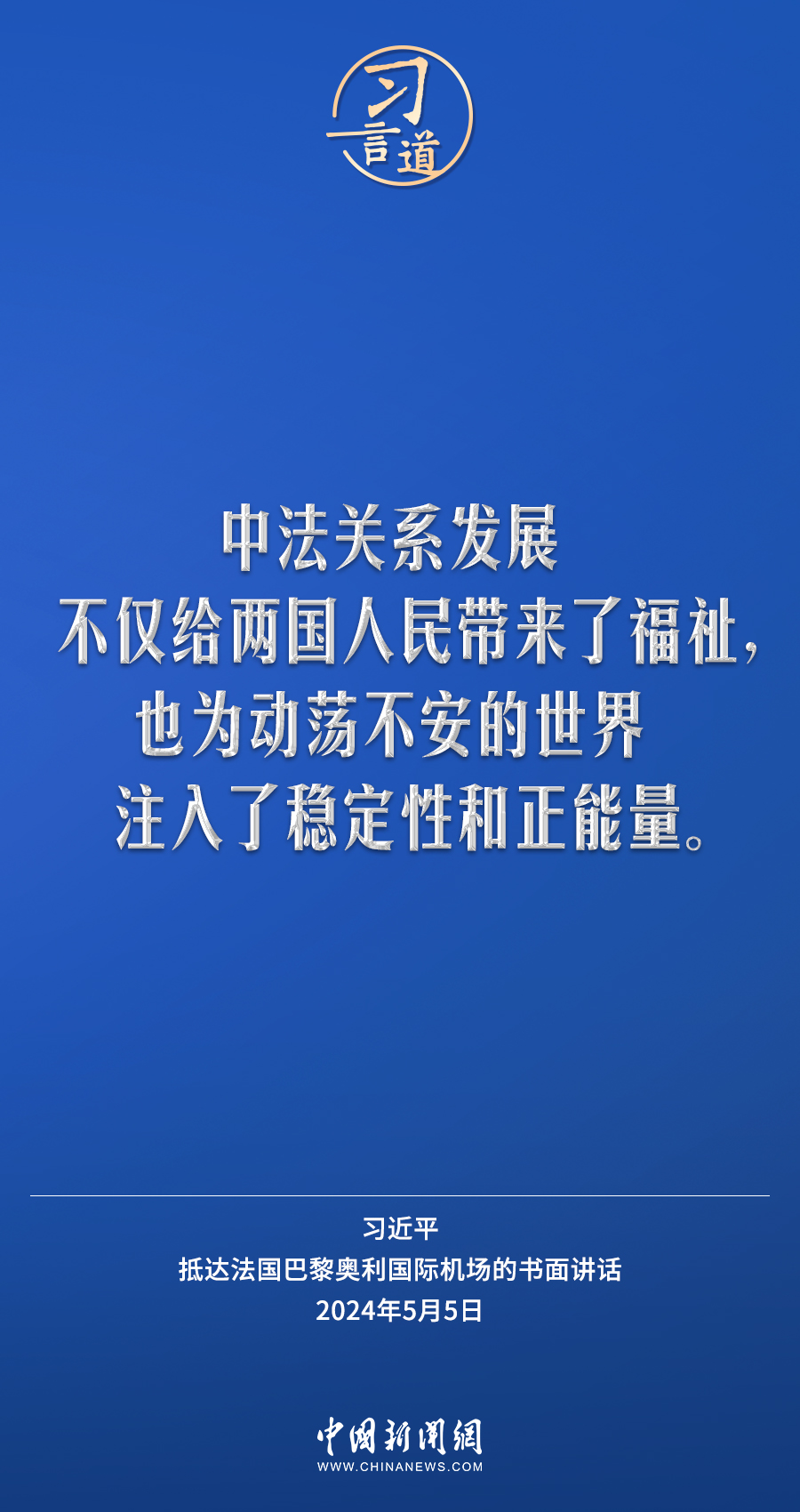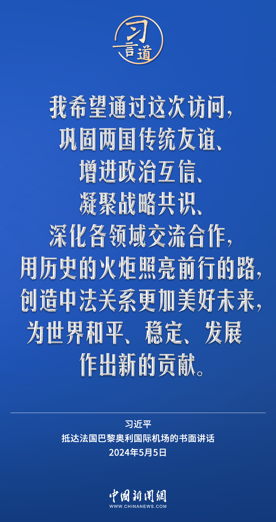 當(dāng)?shù)貢r間5月5日下午,國家主席習(xí)近平抵達(dá)巴黎,開始對法國進(jìn)行國事訪問。在抵達(dá)法國巴黎奧利國際機(jī)場的書面講話中,習(xí)近平指出——