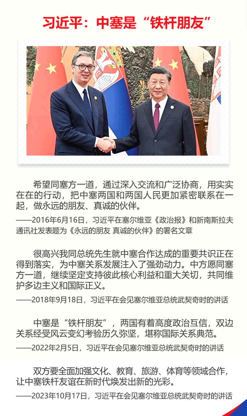 這是時隔近八年,習(xí)主席再次對塞爾維亞進行國事訪問。中塞是“鐵桿朋友”,習(xí)主席指出,希望同塞方一道,通過深入交流和廣泛協(xié)商,用實實在在的行動,把中塞兩國和兩國人民更加緊密聯(lián)系在一起,做永遠(yuǎn)的朋友、真誠的伙伴。
