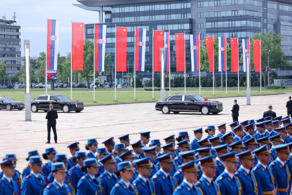 當(dāng)?shù)貢r(shí)間5月8日,國(guó)家主席習(xí)近平在貝爾格萊德出席塞爾維亞總統(tǒng)武契奇舉行的隆重盛大歡迎儀式。歡迎儀式在塞爾維亞大廈南廣場(chǎng)舉行。兩國(guó)元首共同登上檢閱臺(tái),軍樂(lè)團(tuán)奏響中塞兩國(guó)國(guó)歌,鳴10響禮炮。習(xí)近平在武契奇陪同下檢閱儀仗隊(duì)。
