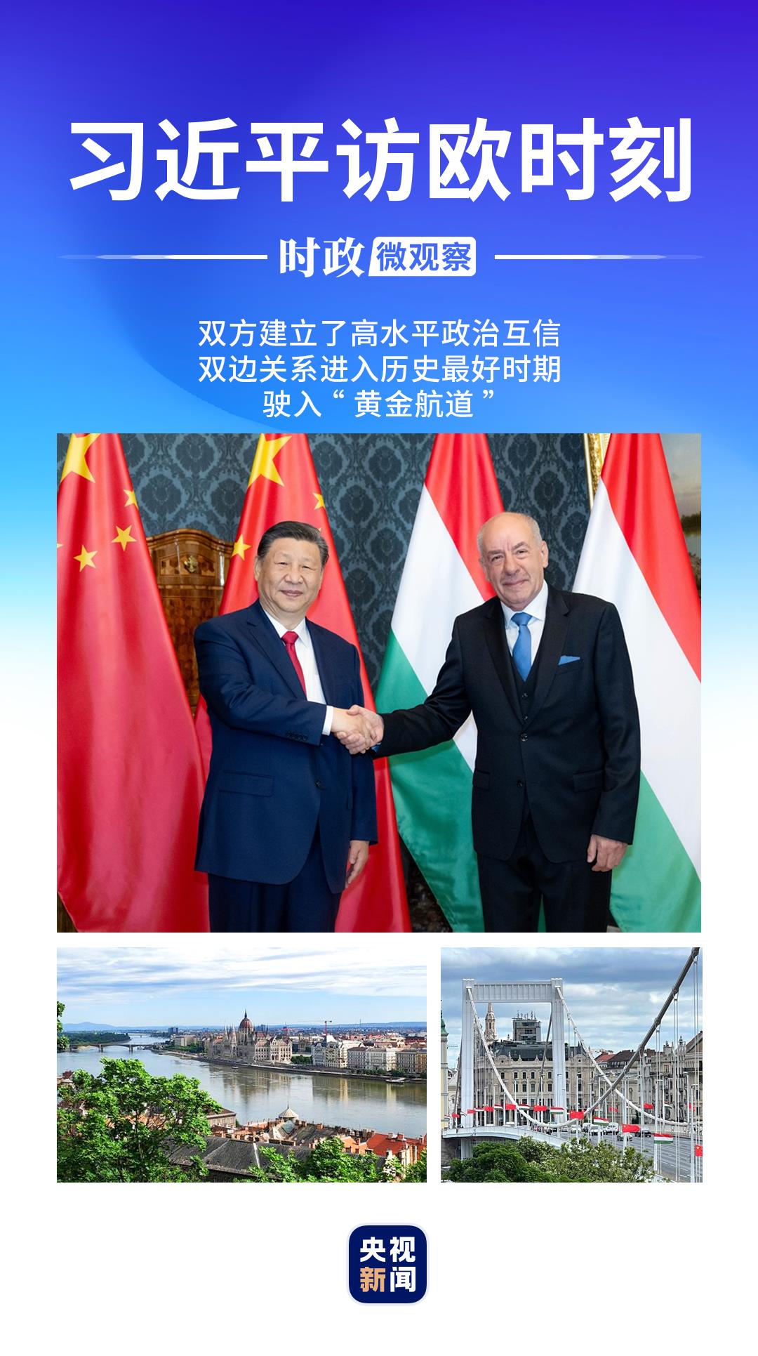 當(dāng)?shù)貢r(shí)間5月9日下午,習(xí)近平主席同歐爾班總理宣布,將中匈關(guān)系提升為新時(shí)代全天候全面戰(zhàn)略伙伴關(guān)系。共同會(huì)見(jiàn)記者時(shí),習(xí)主席再次以“黃金航道”作喻,表示“愿以此為新起點(diǎn),推動(dòng)中匈關(guān)系和務(wù)實(shí)合作進(jìn)入黃金航道”。