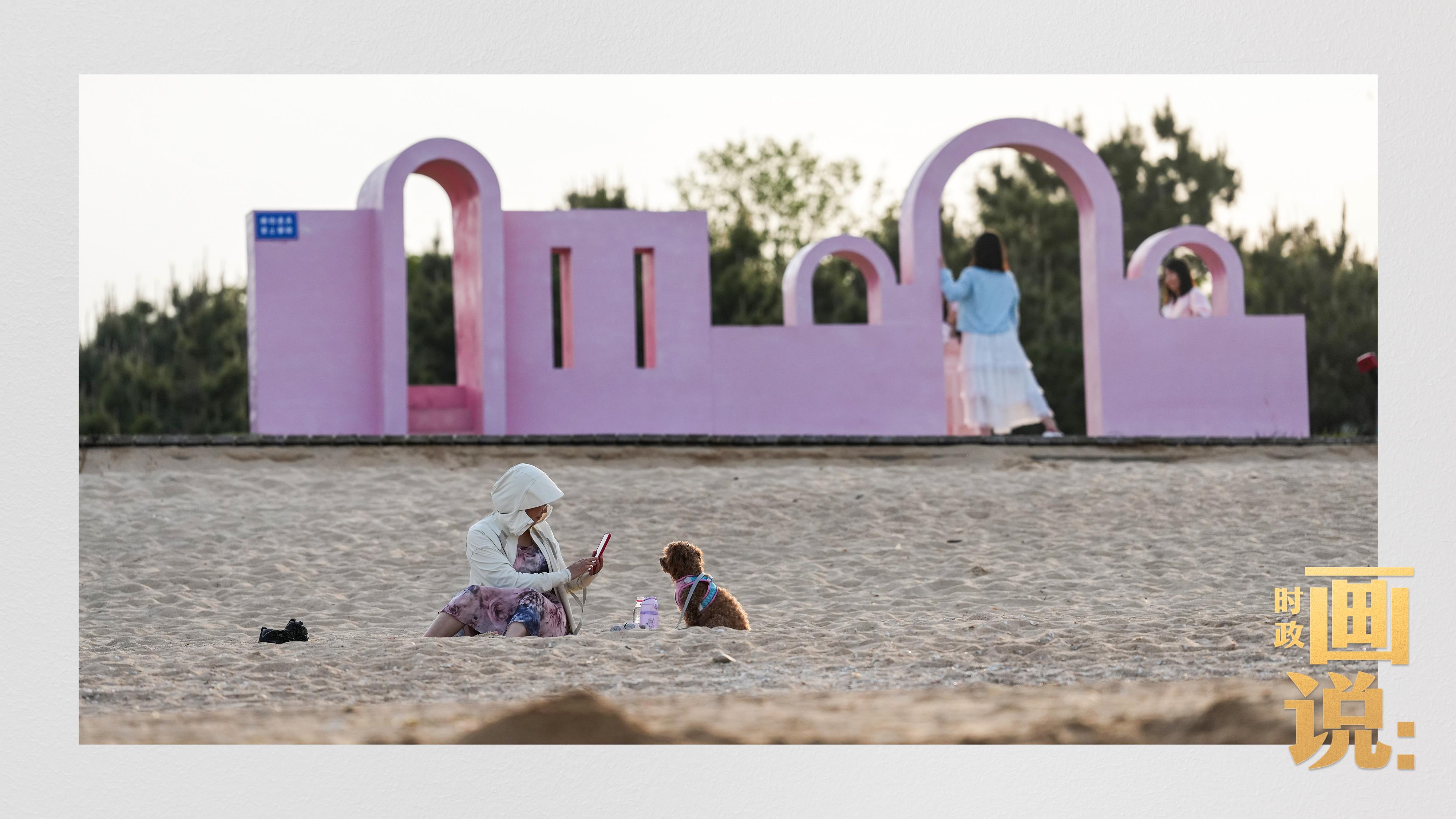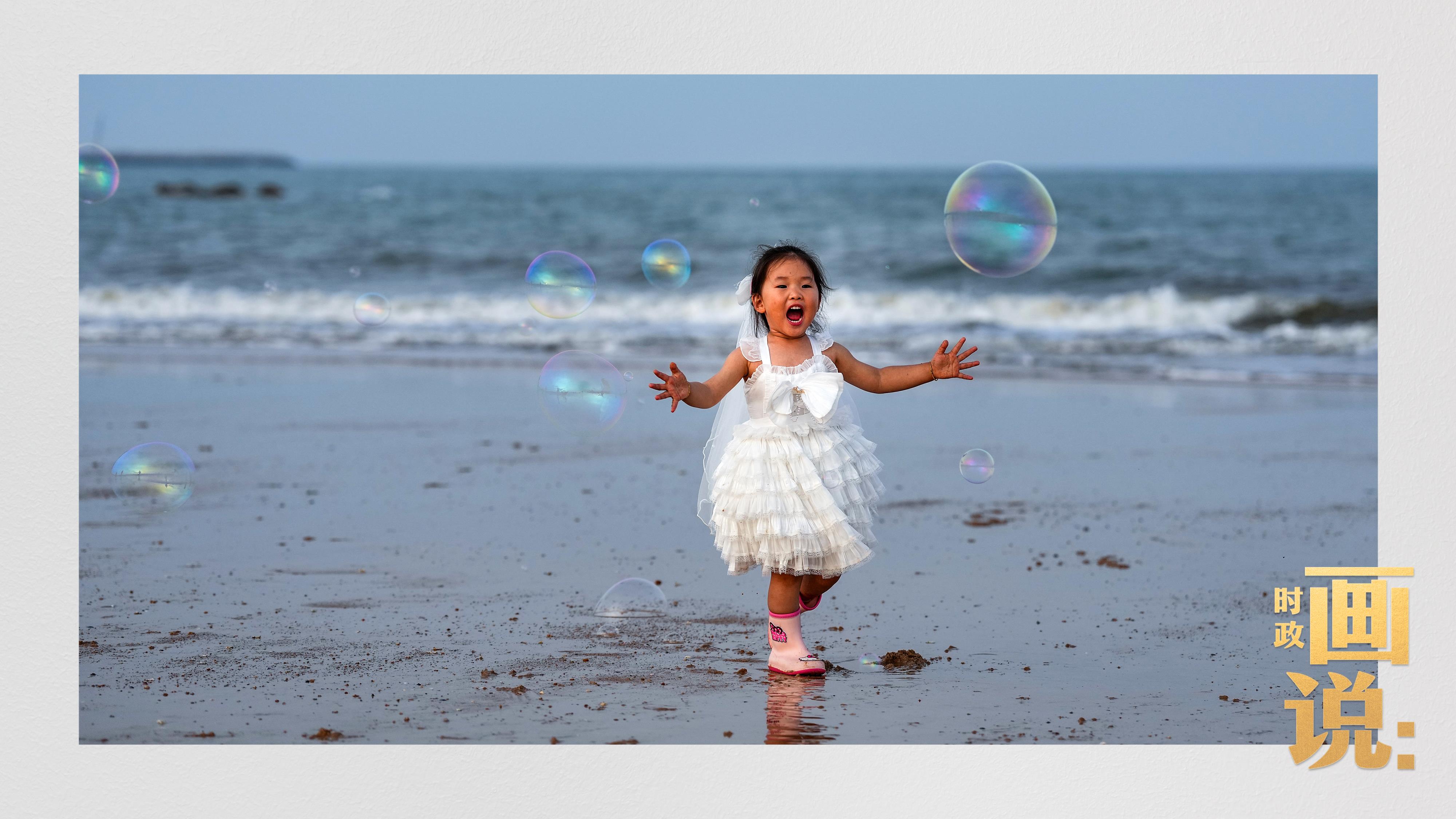 △日照陽(yáng)光海岸綠道上的萬(wàn)平口景區(qū),一對(duì)游客在海浪中翩然起舞。