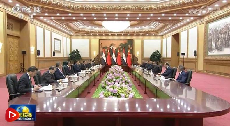 塞西表示,很高興來華進(jìn)行國事訪問并出席中阿合作論壇第十屆部長級會議開幕式。當(dāng)前世界正處于深刻復(fù)雜變化之中,中東地區(qū)深陷危機(jī)。埃方期待同中方進(jìn)一步深化全面戰(zhàn)略伙伴關(guān)系,努力促進(jìn)地區(qū)和平穩(wěn)定。埃方恪守一個中國原則,堅定支持中方在涉臺、涉港、涉藏、人權(quán)等核心利益問題上的立場,堅定支持中國實現(xiàn)國家完全統(tǒng)一。埃方歡迎更多中國企業(yè)赴埃投資合作,助力埃及制造業(yè)發(fā)展和工業(yè)化進(jìn)程。希望以今年“埃中伙伴年”為契機(jī),密切人文交流,加強兩國在信息通訊、人工智能、新能源、糧食安全、金融等方面合作。埃方贊賞習(xí)近平主席提出的系列全球倡議,愿同中方密切多邊協(xié)作,為人類和平進(jìn)步作出積極貢獻(xiàn)。