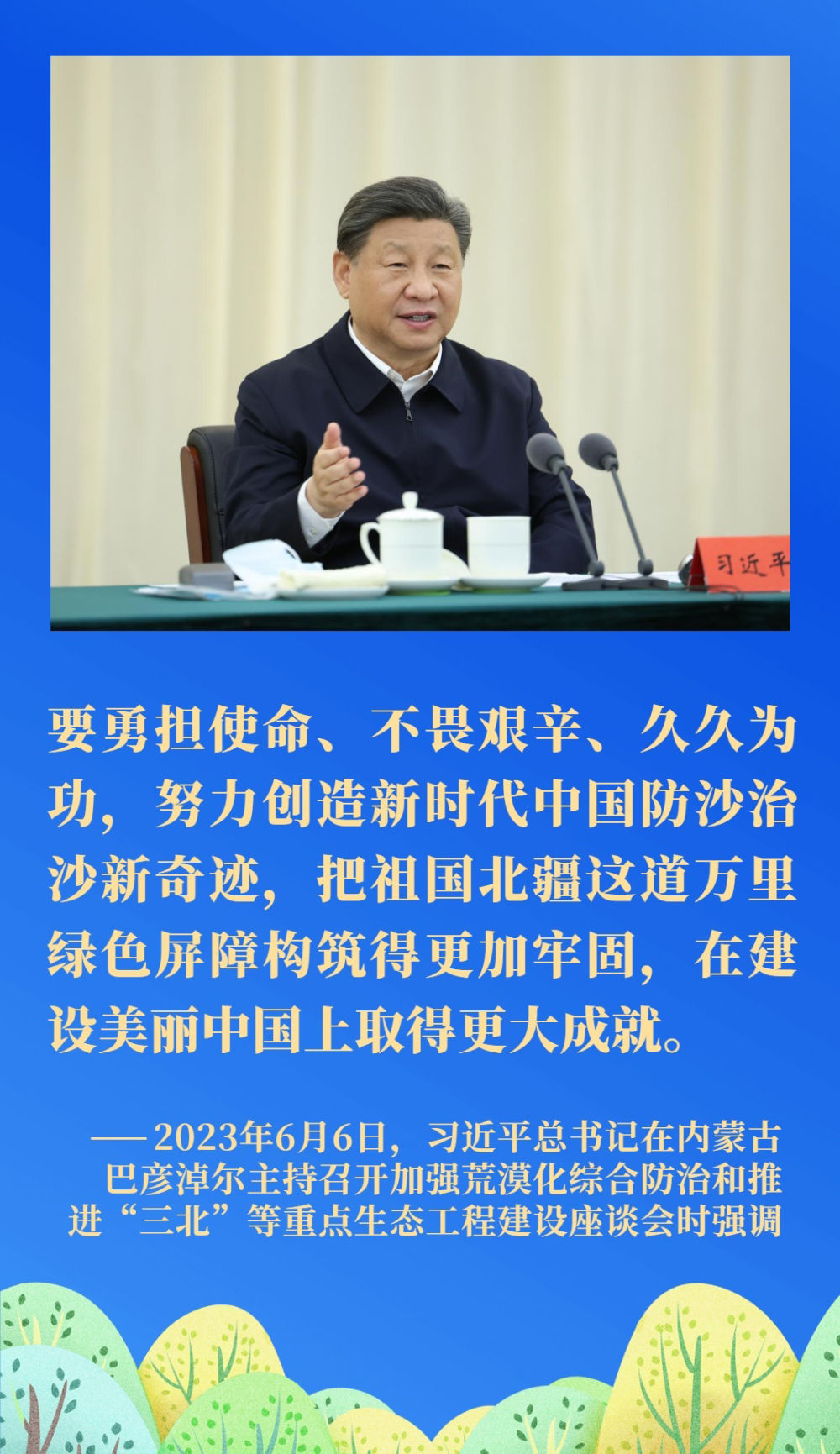荒漠化是影響人類生存和發(fā)展的全球性重大生態(tài)問題。我國是世界上荒漠化最嚴重的國家之一。習近平總書記一直將防沙治沙牽掛在心,多次對荒漠化防治、推進“三北”重點生態(tài)工程建設(shè)等工作作出重要指示。