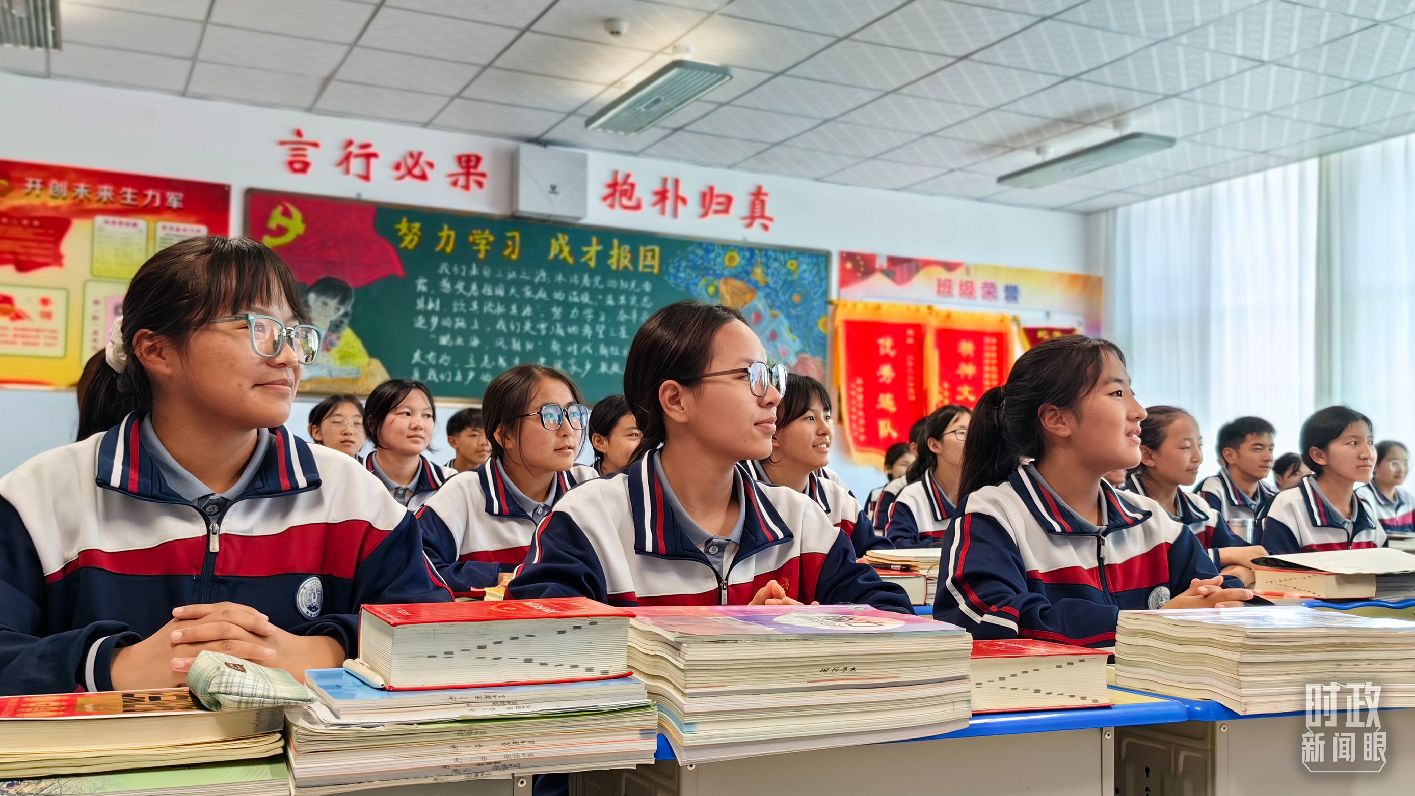果洛西寧民族中學(xué)高一(1)班的“新時(shí)代、新家鄉(xiāng)”主題思政課。(總臺(tái)央視記者許永松、國廣記者李晉拍攝)