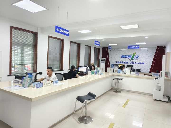 “您好,請問有什么可以幫您?”面對前來辦事的群眾,工作人員微笑著詢問,沒有像銀行柜臺一樣的玻璃阻隔,大家面對面交流,格外順暢。