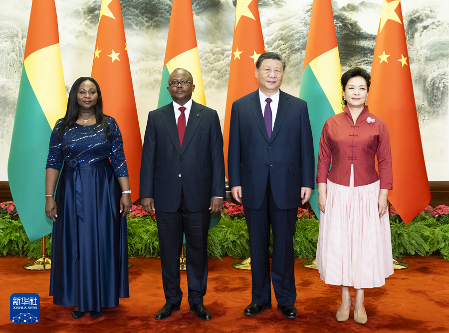 7月10日下午,國家主席習(xí)近平在北京人民大會堂同來華進行國事訪問的幾內(nèi)亞比紹總統(tǒng)恩巴洛舉行會談。這是會談前,習(xí)近平和夫人彭麗媛同恩巴洛和夫人迪尼西婭合影。新華社記者 黃敬文 攝