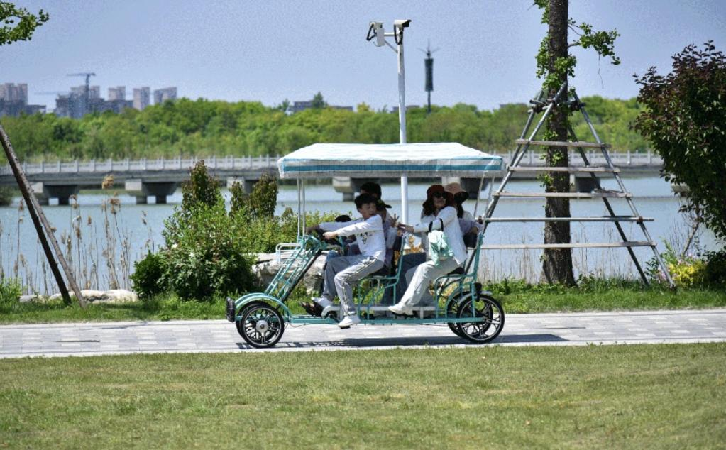 游客們在潘安湖國家濕地公園游玩(央廣網(wǎng)發(fā) 楊勇 攝)