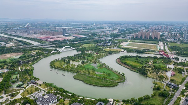 運河三灣生態(tài)文化公園鳥瞰圖(央廣網(wǎng)記者 鄭楚豫 攝)