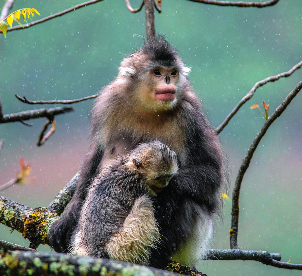 云南迪慶藏族自治州香格里拉滇金絲猴國家公園里的滇金絲猴(資料照片)胡超 攝/本刊