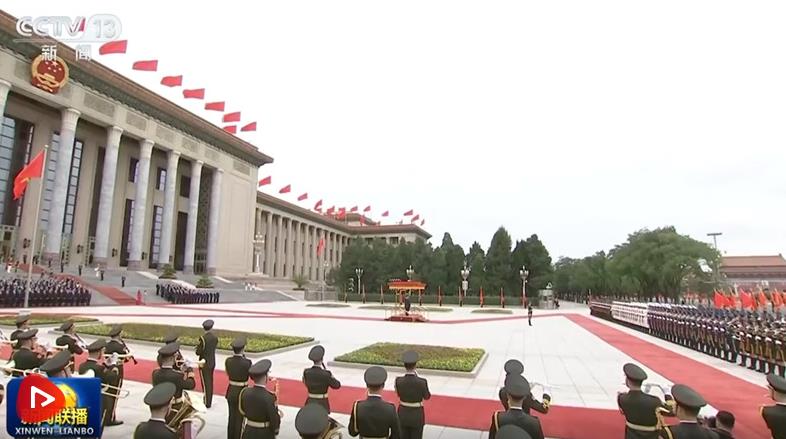 會(huì)談前,習(xí)近平和夫人彭麗媛在人民大會(huì)堂東門(mén)外廣場(chǎng)為蘇林和夫人吳芳璃舉行歡迎儀式。