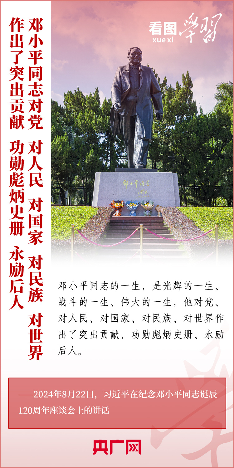 8月22日,習(xí)近平總書記在紀(jì)念鄧小平同志誕辰120周年座談會(huì)上發(fā)表重要講話指出,鄧小平同志的歷史功勛是全方位的、開(kāi)創(chuàng)性的,對(duì)中國(guó)和世界的影響是深刻的、長(zhǎng)遠(yuǎn)的??倳洀?qiáng)調(diào),對(duì)鄧小平同志最好的紀(jì)念,就是把他開(kāi)創(chuàng)的中國(guó)特色社會(huì)主義事業(yè)繼續(xù)推向前進(jìn)。我們要緊緊圍繞以中國(guó)式現(xiàn)代化全面推進(jìn)強(qiáng)國(guó)建設(shè)、民族復(fù)興偉業(yè)這個(gè)中心任務(wù),繼往開(kāi)來(lái),奮發(fā)進(jìn)取。一起來(lái)學(xué)習(xí)!