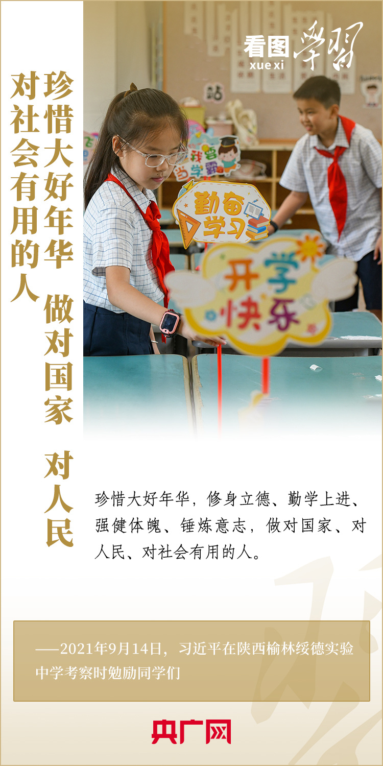 “少年兒童是祖國的未來?!币恢币詠?,習近平總書記高度重視和關心青少年的健康成長。每每走到校園和學生們中間,總書記總會與他們談學習、談理想、談成長,鼓勵他們努力為自己贏得人生出彩的機會,做對國家、對人民、對社會有用的人。又是一年開學季,讓我們一起重溫總書記對莘莘學子的殷切期望。一起來學習!