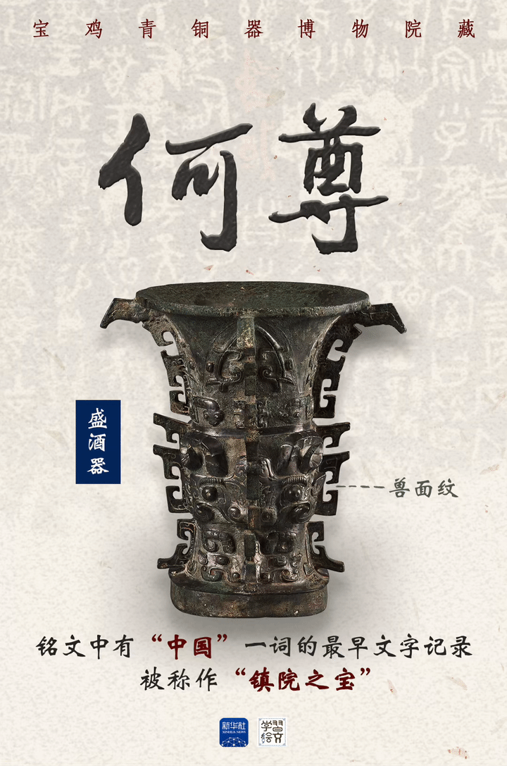 何尊的內(nèi)底銘文中“宅茲中國(guó)”,是“中國(guó)”一詞的最早文字記錄,距今已有三千多年的歷史。何尊上的“中國(guó)”,不僅僅是地理概念的標(biāo)注,更深刻體現(xiàn)了中華民族的凝聚力和向心力。