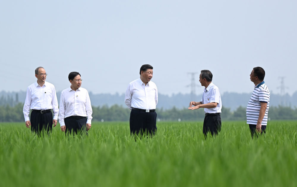 2022年6月8日上午,習(xí)近平在四川眉山市東坡區(qū)太和鎮(zhèn)永豐村高標(biāo)準(zhǔn)水稻種植基地考察,了解水稻試驗(yàn)育種和種植推廣情況。習(xí)近平強(qiáng)調(diào):推進(jìn)農(nóng)業(yè)現(xiàn)代化,既要靠農(nóng)業(yè)專家,也要靠廣大農(nóng)民。要加強(qiáng)現(xiàn)代農(nóng)業(yè)科技推廣應(yīng)用和技術(shù)培訓(xùn),把種糧大戶組織起來(lái),積極發(fā)展綠色農(nóng)業(yè)、生態(tài)農(nóng)業(yè)、高效農(nóng)業(yè)。我們有信心、有底氣把中國(guó)人的飯碗牢牢端在自己手中。