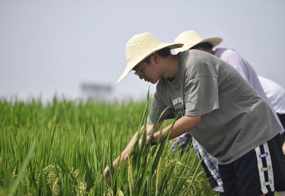 觀察水稻生長(zhǎng)情況。