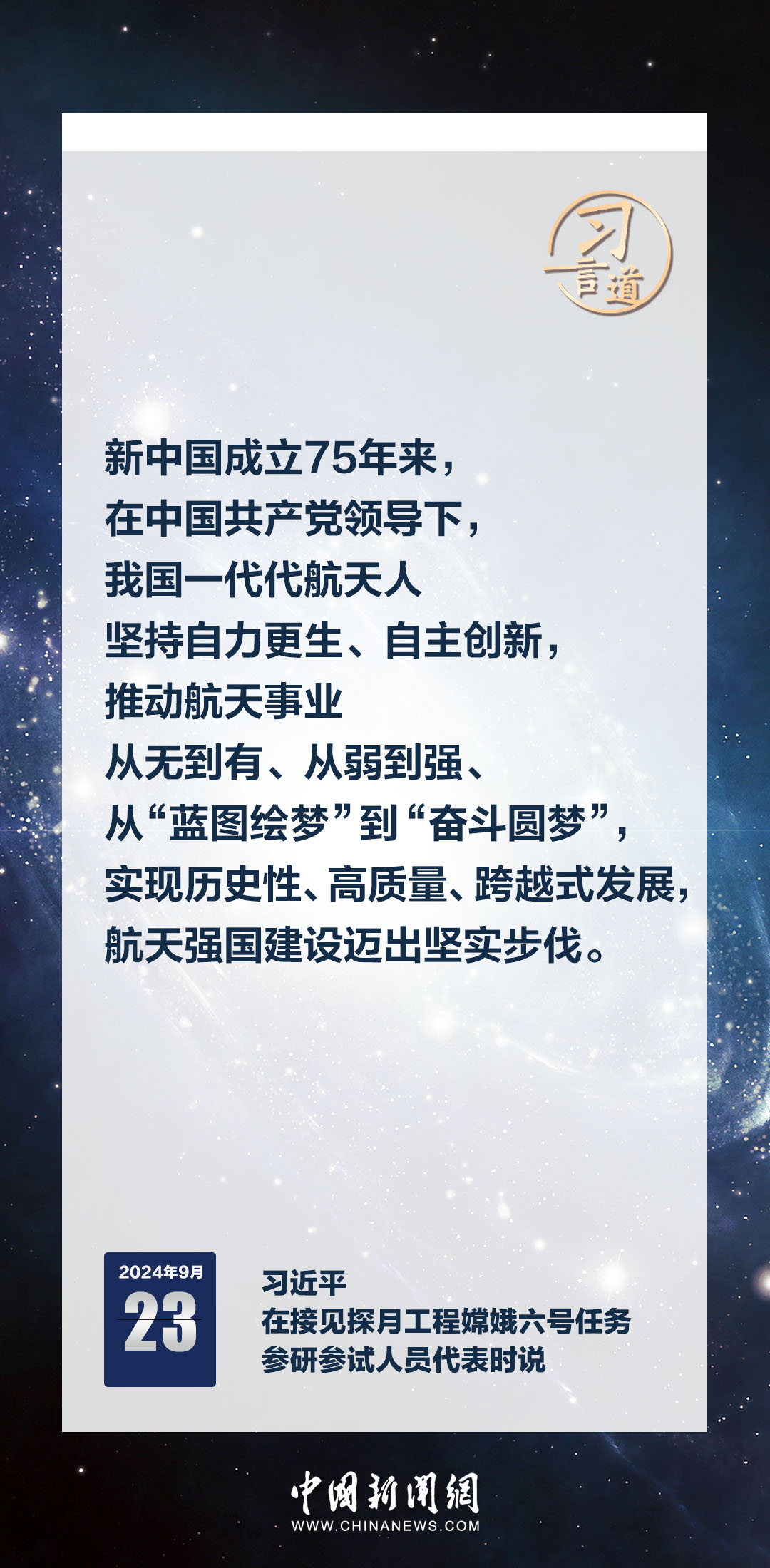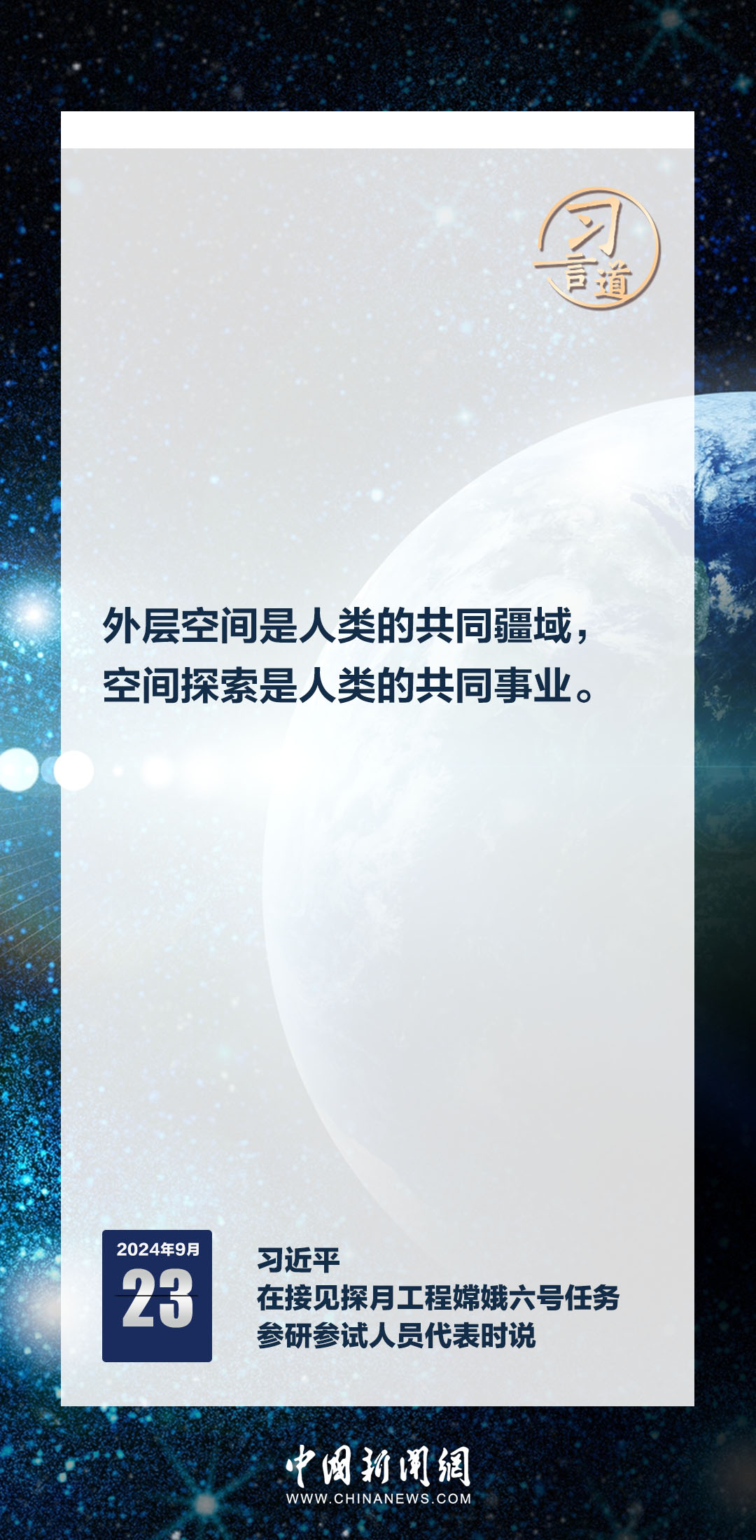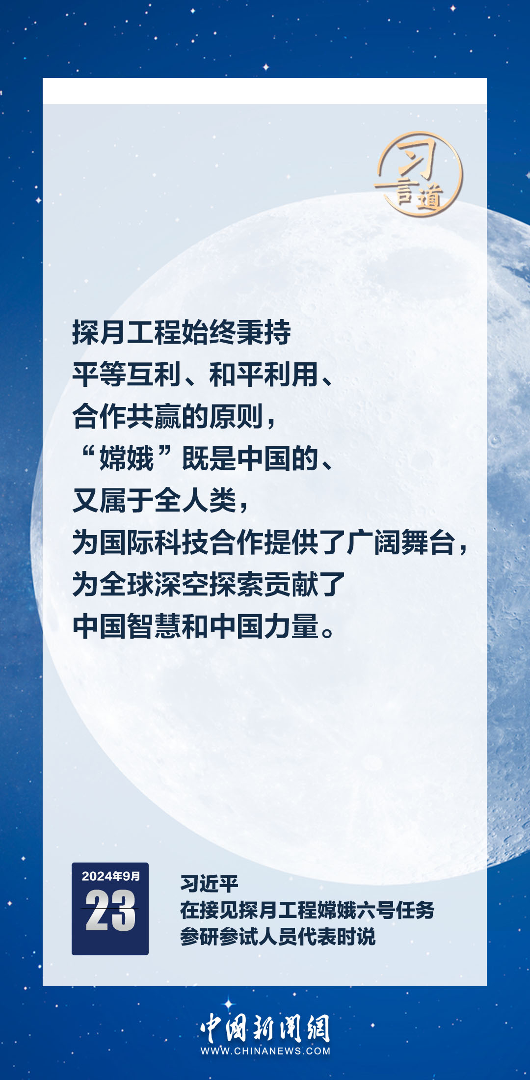 中共中央總書(shū)記、國(guó)家主席、中央軍委主席習(xí)近平23日在人民大會(huì)堂接見(jiàn)探月工程嫦娥六號(hào)任務(wù)參研參試人員代表時(shí)發(fā)表重要講話。習(xí)近平指出——