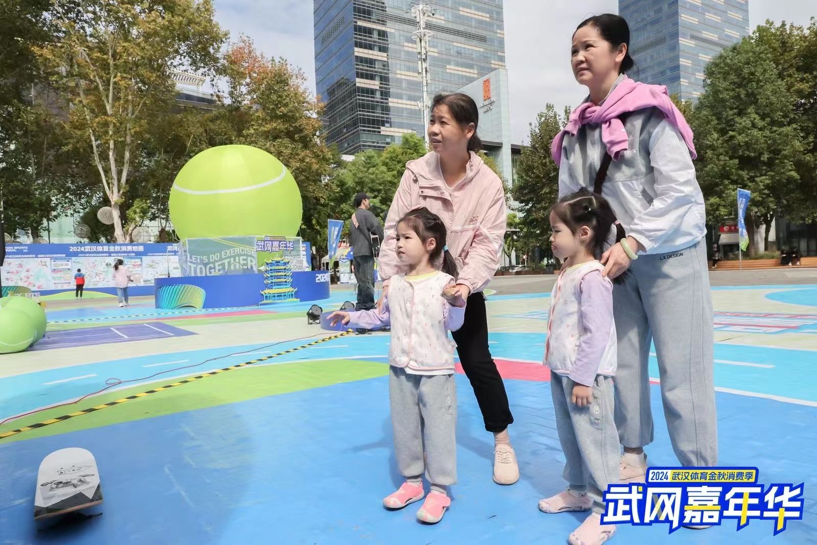 10月4日,武漢天地商圈熱鬧非凡,武漢體育金秋消費(fèi)季——武網(wǎng)嘉年華分會(huì)場(chǎng),琳瑯滿目的市集展銷,設(shè)置了網(wǎng)球、籃球、沖浪等多樣運(yùn)動(dòng)互動(dòng)裝置,還有多個(gè)特色城市打卡點(diǎn),吸引了市民游客前來體驗(yàn)。游客樊女士介紹,專程帶孩子過來看比賽,平時(shí)也會(huì)打網(wǎng)球,在這里動(dòng)一動(dòng)熱熱身,很有意思。