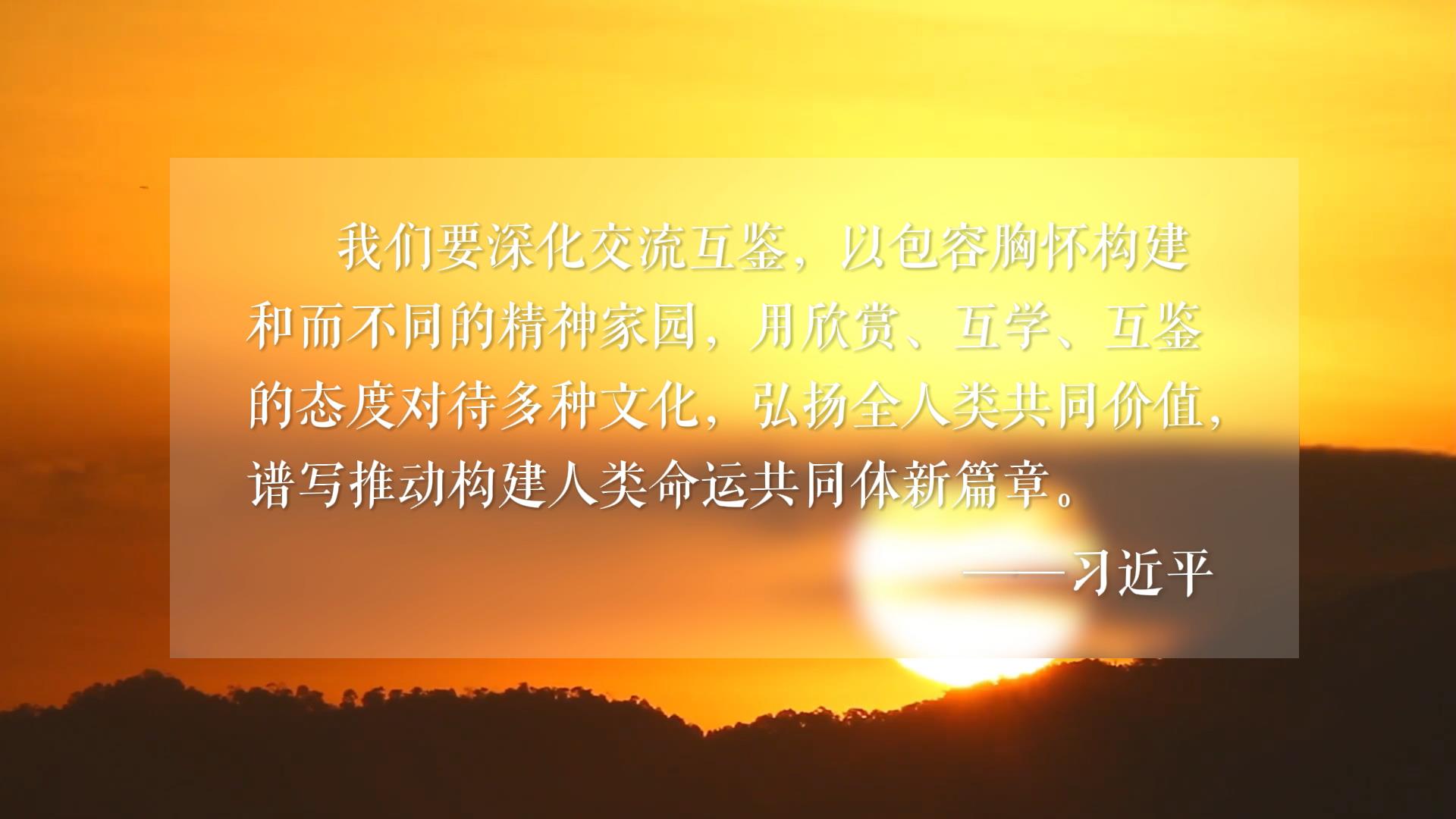 我們要深化交流互鑒,以包容胸懷構(gòu)建和而不同的精神家園,用欣賞、互學(xué)、互鑒的態(tài)度對(duì)待多種文化,弘揚(yáng)全人類共同價(jià)值,譜寫(xiě)推動(dòng)構(gòu)建人類命運(yùn)共同體新篇章。