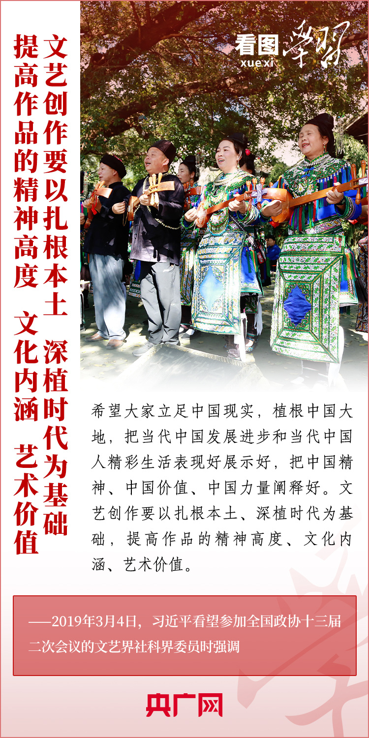 十年來,我國廣大文藝工作者深入生活、扎根人民,創(chuàng)作出一大批彰顯中國精神、體現(xiàn)人文關懷、富有藝術創(chuàng)新力的優(yōu)質(zhì)文藝作品,努力用豐富多彩的文藝精品滿足人們對精神文化生活的需求。如何創(chuàng)作出更多無愧于時代、無愧于人民的優(yōu)秀作品?讓我們一起深刻領悟總書記的“文藝觀”。