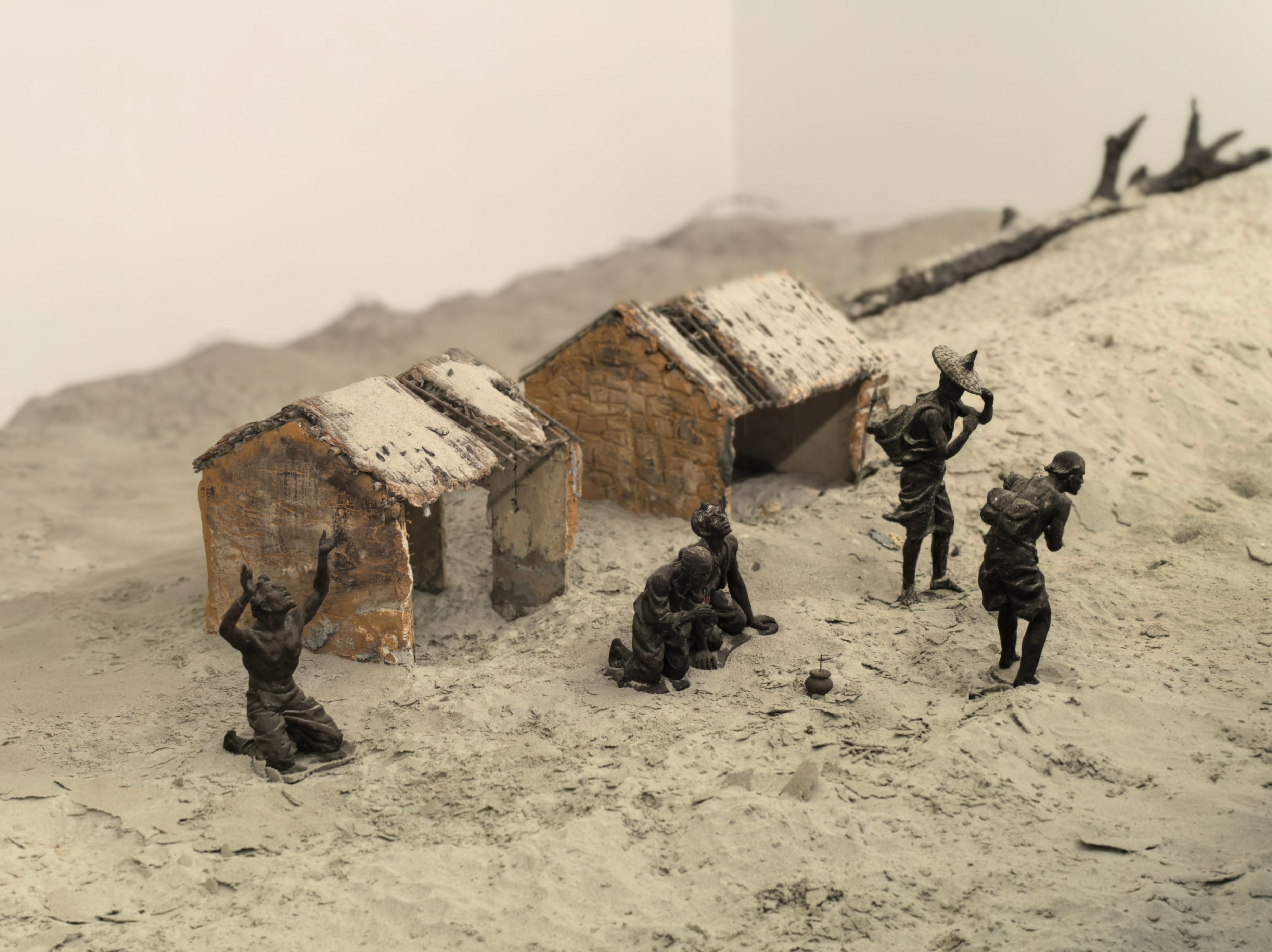谷文昌紀念館里展示的當年東山人民飽受風沙災害之苦的情景。(總臺央廣記者潘毅拍攝)