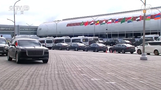 △“金磚+”領(lǐng)導(dǎo)人對話會現(xiàn)場的旗陣。(總臺央視記者程鋮拍攝)