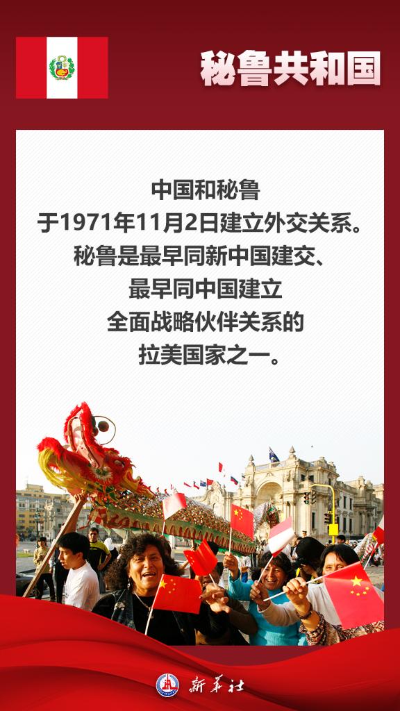 應(yīng)秘魯共和國(guó)總統(tǒng)博魯阿爾特邀請(qǐng),國(guó)家主席習(xí)近平將于11月13日至17日赴利馬出席亞太經(jīng)合組織第三十一次領(lǐng)導(dǎo)人非正式會(huì)議并對(duì)秘魯進(jìn)行國(guó)事訪問(wèn)。秘魯位于南美洲西部,是印加文明發(fā)祥地,也是最早同新中國(guó)建交的拉美國(guó)家之一。關(guān)于秘魯,七張海報(bào)帶你了解更多——