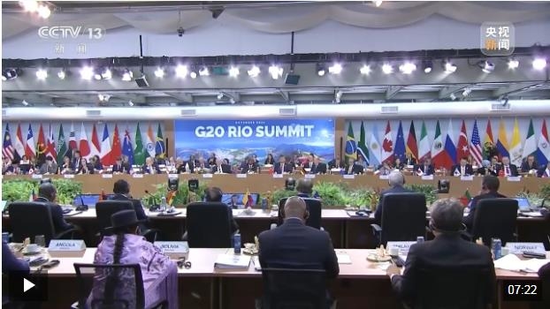 習(xí)近平指出,當(dāng)今世界百年變局加速演進,人類發(fā)展面臨的機遇和挑戰(zhàn)前所未有。作為世界主要大國領(lǐng)導(dǎo)人,我們應(yīng)該不畏浮云遮望眼,秉持命運共同體意識,扛起歷史責(zé)任,展現(xiàn)歷史主動,推動歷史進步。中國主辦二十國集團領(lǐng)導(dǎo)人杭州峰會時,首次將發(fā)展議題放到宏觀經(jīng)濟政策協(xié)調(diào)的中心位置,這次里約熱內(nèi)盧峰會把“構(gòu)建公正的世界和可持續(xù)的星球”作為主題,并決定成立“抗擊饑餓與貧困全球聯(lián)盟”。從杭州到里約熱內(nèi)盧,我們都致力于同一個目標(biāo),即建設(shè)一個共同發(fā)展的公正世界。