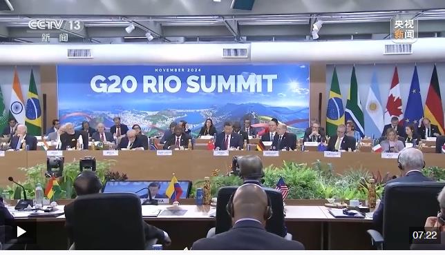 當天,G20領導人第十九次峰會在里約熱內(nèi)盧現(xiàn)代藝術博物館開幕。峰會主題是“構建公正的世界和可持續(xù)的星球”,重點聚焦全球不平等、抗擊饑餓與貧困、可持續(xù)發(fā)展和全球治理改革等議題。