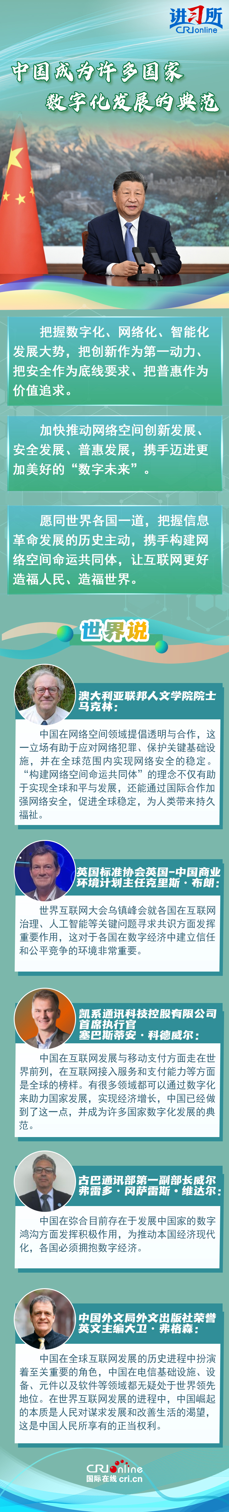 多國人士表示,中國在全球互聯(lián)網(wǎng)發(fā)展的歷史進程中扮演著至關(guān)重要的角色,“構(gòu)建網(wǎng)絡(luò)空間命運共同體”的理念不僅有助于實現(xiàn)全球和平與發(fā)展,還能為人類帶來持久福祉。