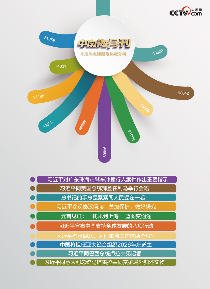 央視網(wǎng)“智聞”系統(tǒng)提取分析2024年11月全網(wǎng)時政新聞熱點,其中總書記與人民親切互動、世界專注傾聽中國方案等“時政微鏡頭”吸引全網(wǎng)關(guān)注。
