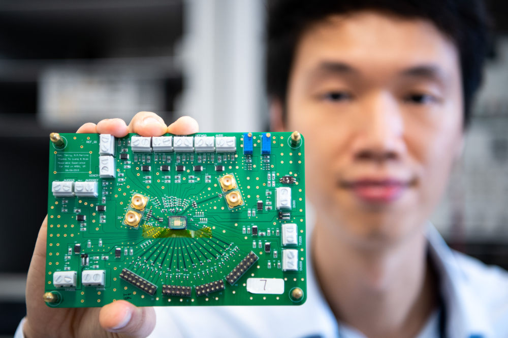 2019年11月1日,研究人員陳知行在模擬與混合信號超大規(guī)模集成電路國家重點實驗室(澳門大學(xué))展示自主設(shè)計的模擬數(shù)字轉(zhuǎn)換器芯片。