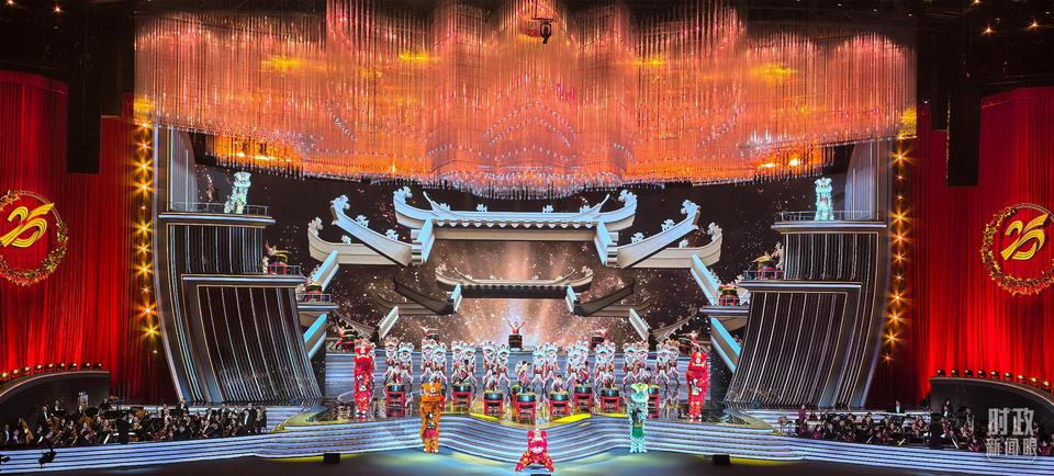 △慶祝澳門(mén)回歸祖國(guó)25周年文藝晚會(huì)現(xiàn)場(chǎng)燈光璀璨,歡樂(lè)喜慶。(總臺(tái)央視記者范學(xué)禹拍攝)