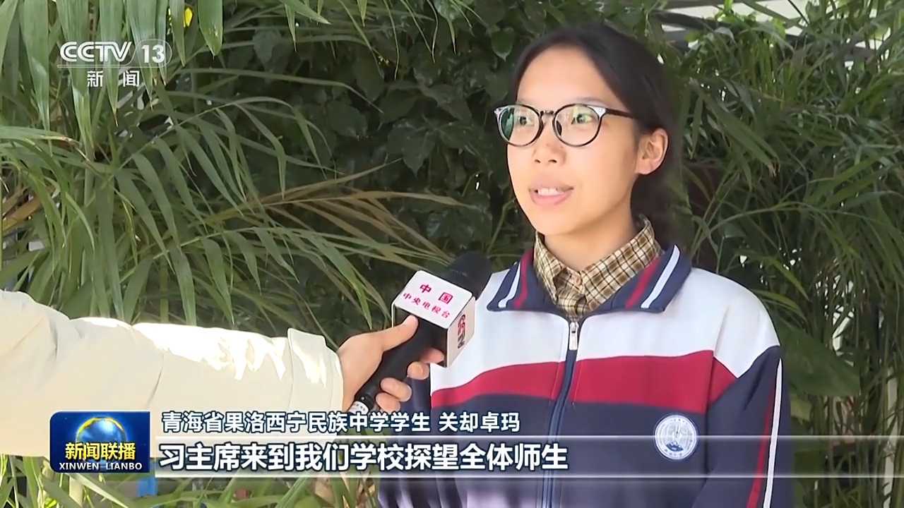 青海省果洛西寧民族中學(xué)學(xué)生 關(guān)卻卓瑪:去年的6月18日,習(xí)主席來到我們學(xué)校探望全體師生,對我們青年學(xué)生一代寄予了深切厚望。在新的一年里面,我一定要努力學(xué)習(xí)、發(fā)奮圖強(qiáng)。夢雖遙,追則能達(dá),我相信自己一定能夠?qū)崿F(xiàn)夢想。