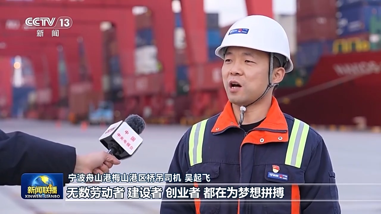 寧波舟山港梅山港區(qū)橋吊司機(jī) 吳起飛:習(xí)近平總書記在2025年新年賀詞里說,無數(shù)勞動者、建設(shè)者、創(chuàng)業(yè)者都在為夢想拼搏。2024年,我們實(shí)現(xiàn)了寧波舟山港梅山港區(qū)年集裝箱吞吐量超一千萬的目標(biāo)。2025年,和團(tuán)隊(duì)的小伙伴們一起,把智慧港口建設(shè)好,為海港的發(fā)展貢獻(xiàn)力量。